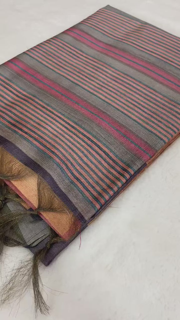 Multi Colors Soft Tussar Silk Saree With Beautiful Print With Attractive Pallu And Contrast Pallu With Tassal