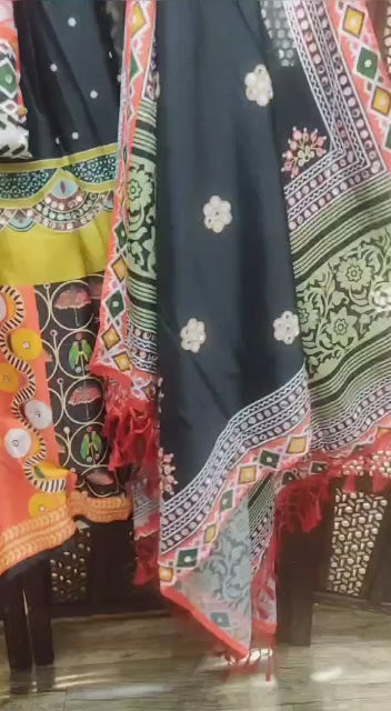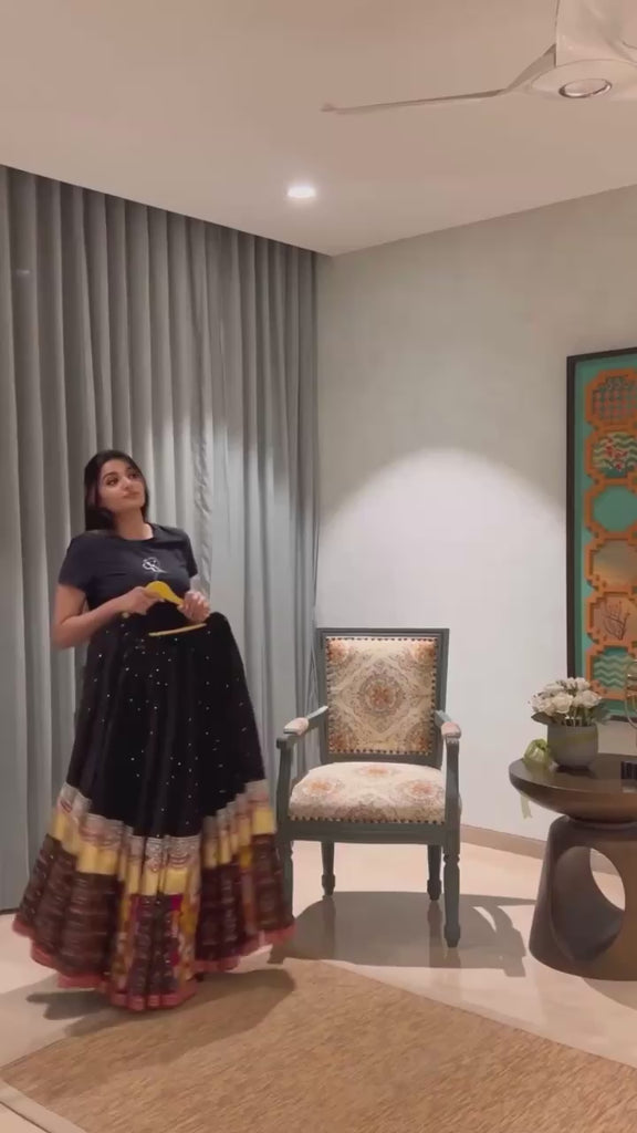 • Choli: Crafted from soft Chinon silk, featuring real mirror work. The blouse fabric measures 1.20 meters.